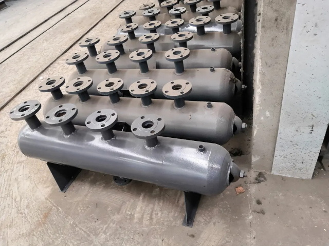 蒸汽分气缸是锅炉的配套承压设备器皿,由多个阀座、配汽闸阀、安全阀座、疏水阀座、气压表座、温度仪座、封头、外壳等构成。